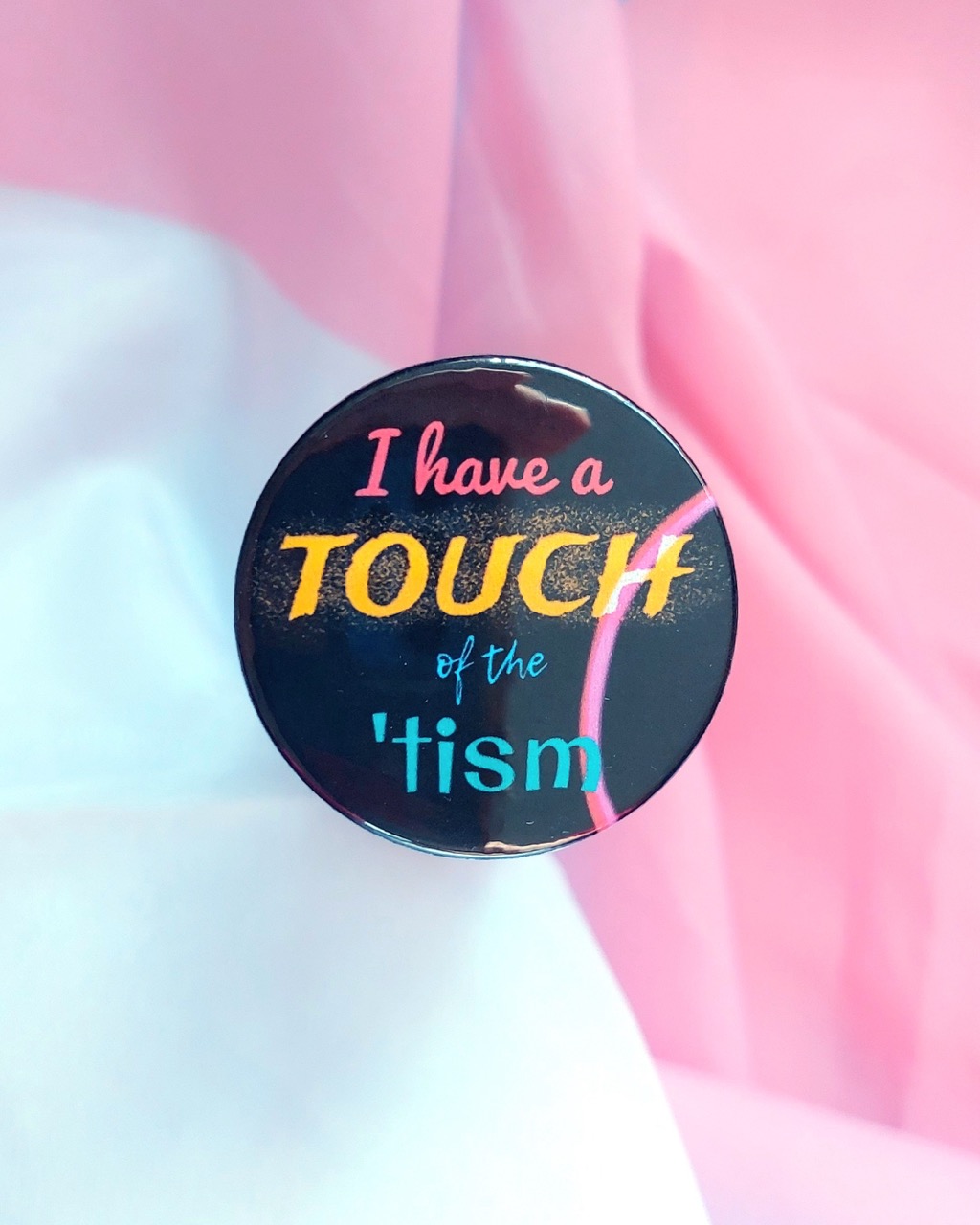 Show that you also have a touch of the ’tism with this 38mm pin badge with metal back and clasp featuring the I have a touch of the ’tism design. Be proud in your identity as autistic, AuDHD, neurospicy or neurodiverse and share your special interests with other ND people you see wearing this badge.Now you can show your love for your special interest with this pin badge!